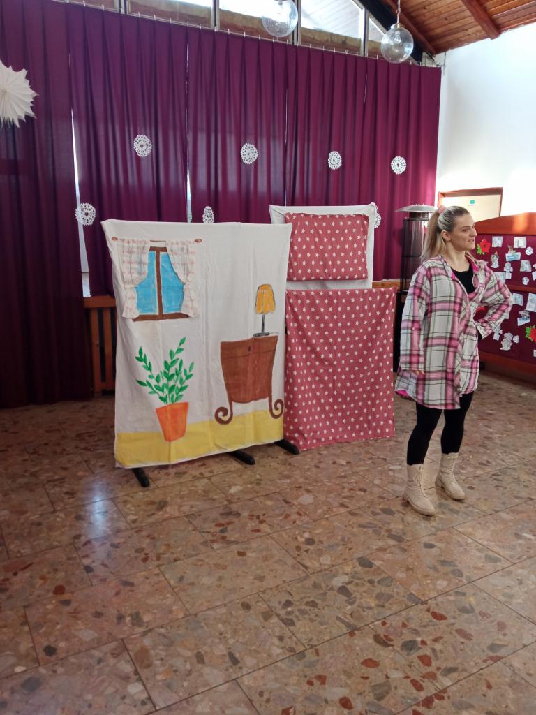 Dnes nám zahrali rozprávku Budík členovia divadla Sarus. Bolo to super.